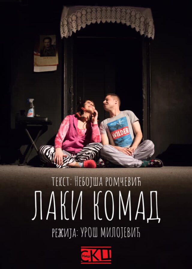 U petak, 22. marta u 21 sat, kamerna scena Akademskog pozorišta SKC-a je rezervisana za premijeru predstave „Laki komad“, koja je rađena po tekstu Nebojše Romčevića, u režiji Uroša Milojevića.