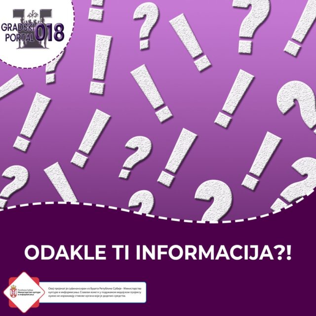 U trećoj epizodi serijala „Odakle ti informacija?!“ odgovore smo potražili od doktoranda Milana Dojčinovića, na smeru Mediji i društvo niškog Filozofskog fakulteta, šefa redakcije Večernjih novosti u Nišu Daliborke Alihodžić i Ilije Milosavljevića, istraživača pripravnika na smeru komunikologija niškog Filozofskog fakulteta.