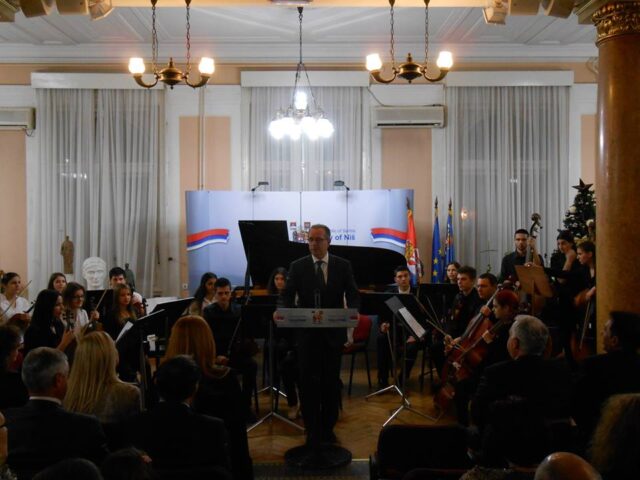 Naslovna Društvo Održan Božićni koncert u gradskoj kući u Nišu DruštvoNiš Održan Božićni koncert u gradskoj kući u Nišu Od redakcija GP018 - 16/12/2013 0 FacebookTwitterPinterestWhatsApp Pod pokroviteljstvom gradonačelnika Niša prof.dr Zorana Perišića,a u organizaciji Generalnog konzulata Republike Bugarske u Nišu i Muzičke škole „Dr Vojislav Vučković“ u Gradskoj kući održan je svečani Božićni koncert.