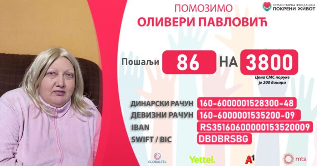 Oliveri su potrebna novčana sredstva za nastavak lečenja, dijagnostiku, smeštaj i putne troškove kao i za operaciju koja će biti rađena u inostranstvu.