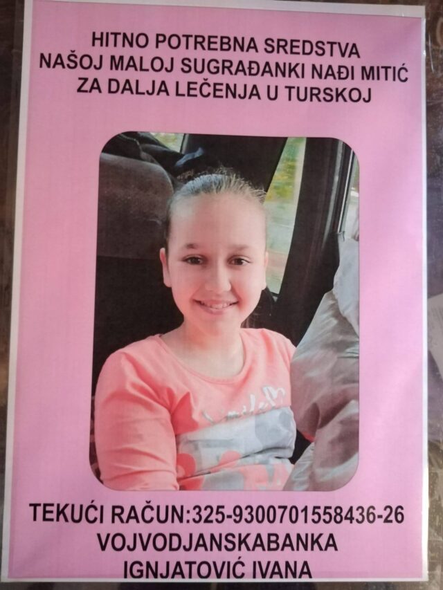 Pozivaju se svi humani ljudi, organizacije, firme i ustanove da se priključe akciji pomoći maloj Nađi Mitić. Novčana sredstva mogu se uplatiti na žiro račun Vojvođanske banke: 325 – 9300701558436 – 26.