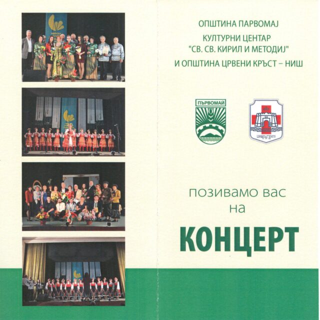 Danas 08. juna opština Prvomaj iz Republike Bugarske u Simfonijskom orkestru sa početkom u 18 sati održaće koncert za sve Nišlije. Pored dva kratka komada programom je predviđena i ruska pevačka grupa i folklorni ansambl. Ulaz na koncertu je slobodan dobrodošli.