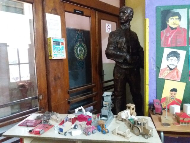U hodnicima škole izloženi su radovi učenika iz tehnike i informatičkog obrazovanja, ali i oprema koja se koristi za eksperimente u fizici ili hemiji.