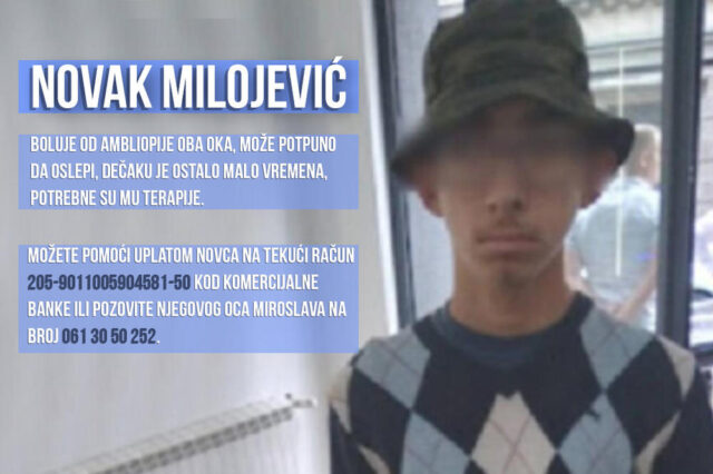 – Pre par dana je pao u školi, gotovo da ništa ne vidi, gubi ravnotežu. Moje dete uopšte nije dobro. Dobio sam uput za hitan odlazak u KC Beograd i rusku kliniku „Eliksir“, za koju doktorka tvrdi da je jedna od najboljih u svetu. Molim sve dobre ljude da mi pomognu, da mu sačuvamo vid. Sada su mi rekli i da su mu se pojavila dva glaukoma na oba oka. Ne radim nigde, ne znam šta ću, dodaje zabrinuti otac.