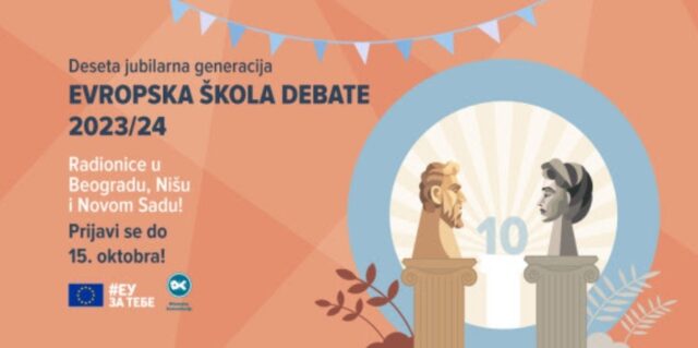 29. septembar, 2023. – Slavimo mali jubilej i biramo desetu generaciju polaznika „Evropske škole debate”, a tim povodom EU info mreža i Otvorena komunikacija pozivaju zainteresovane da se prijave i pridruže grupi od preko 900 mladih debatera koji su već pohađali ovaj program i iz njega poneli najbolja iskustva i stekli nove veštine.