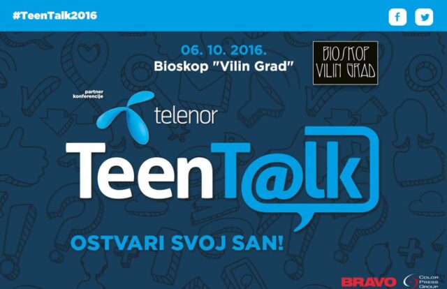 Nakon uspešno održane konferencije u Novom Sadu, u organizaciji Bravo magazina, a pod porkoviteljstvom Telenora i GO „Crveni Krst“, druga „TeenTalk2016“, konferencija održaće se u Nišu, 6. oktobra u bioskopu „Vilin Grad“. Registracija počinje u 9.30 sati, a zvaničan početak konferencije zakazan je za 10 sati.