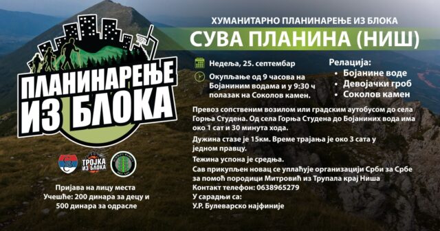 Reč je događaju pod nazivom “Planinarenje iz Bloka“ u okviru projekta Trojka iz Bloka koji je deo Humanitarne organizacije Srbi za Srbe.