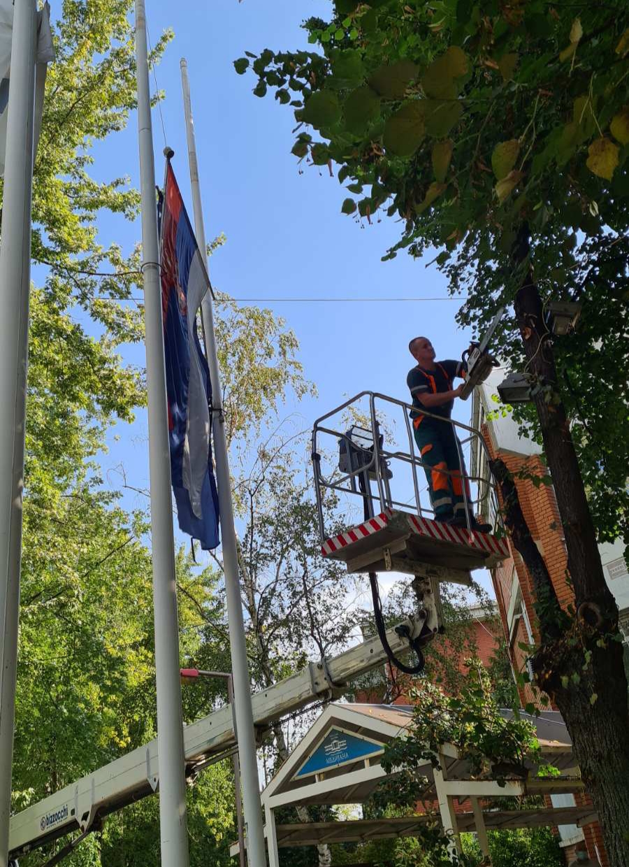 Radnici JКP „Mediana“ uklonili su nekoliko delova velikog stabla ispod kojeg često borave učenici ove škole i roditelji sa decom. Uklonjeni su i dotrajali delovi drveća u dvorištu same opštine, pored jarbola sa zastavama i na ulazu u ovu lokalnu samoupravu.
