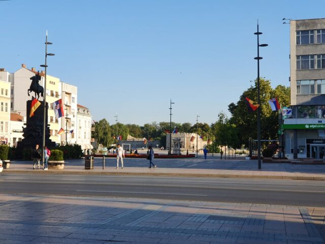 U centralnom delu Niša istaknute su srpske i nemačke zastave povodom posete nemačke kancelarke Angele Merkel Srbiji.