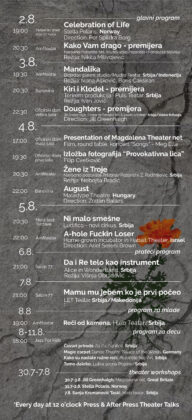 Za 10 dana trajanja festivala biće prikazano 17 predstava iz 7 zemalja od kojih su tri premijere. Pozorišta iz Norveške, Mađarske, Indonezije, Republike Severne Makedonije, Izraela, Velike Britanije i Srbije će kroz specifičan umetnički izraz pokazati svoju pobunu protiv nekih društvenih provokacija u sredinama iz kojih dolaze.
