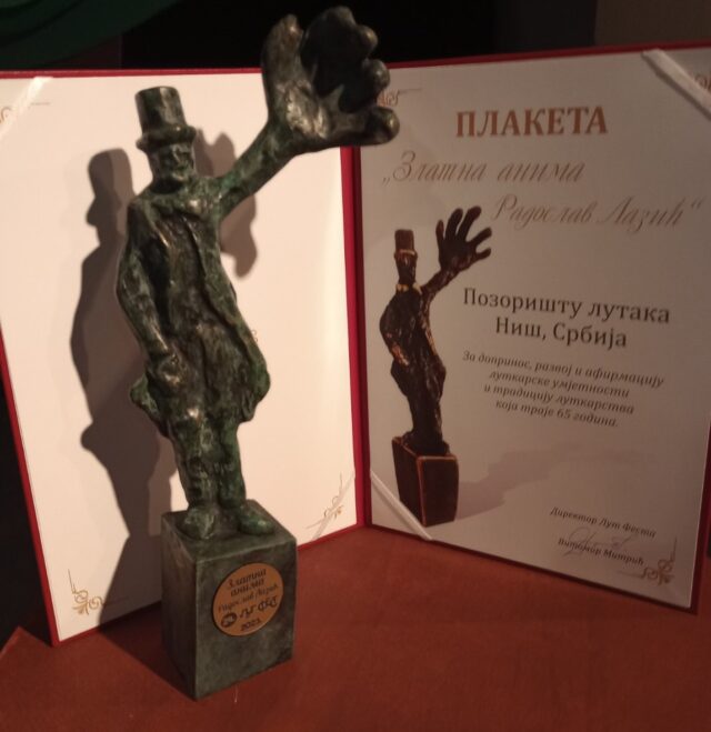 Sinoć je na svečanoj ceremoniji otvaranja Dvadeset četvrtog međunarodnog festivala profesionalnih lutkarskih pozorišta za djecu „Lut fest“ u Istočnom Sarajevu Pozorištu lutaka Niš dodeljena nagrada „Zlatna anima – Radoslav Lazić“ za doprinos razvoju i afirmaciji lutkarske umetnosti i tradiciji lutkarstva.