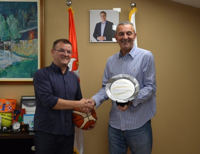 PREDSEDNIKU OPŠTINE GORANU MILjKOVIĆU DODELjENA ZAHVALNICA ZA RAZVOJ KOŠARKAŠKOG SPORTA NA TERITORIJI OPŠTINE BELA PALANKA