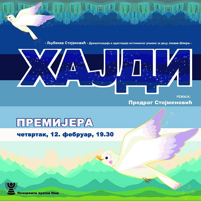U Pozorište lutaka Niš u četvrtak, 12. februara, sa početkom u 19.30 sati, biće održana premijera predstave „Hajdi“. Prva repriza zakazana je za nedelju, 22. februara, u terminu od 11.30 sati