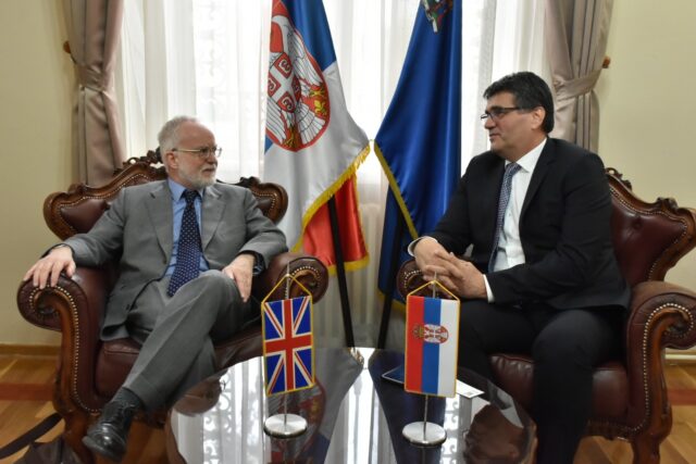 Gradonačelnik Darko Bulatović razgovarao je danas u Gradskoj kući sa Njegovom Ekselencijom Ambasadorom Velike Britanije u Srbiji Denisom Kifom,koji je u dvodnevnoj poseti Nišu u okviru akcije “Pop up“ koju ova ambasada po prvi put organizuje upravo u našem gradu.