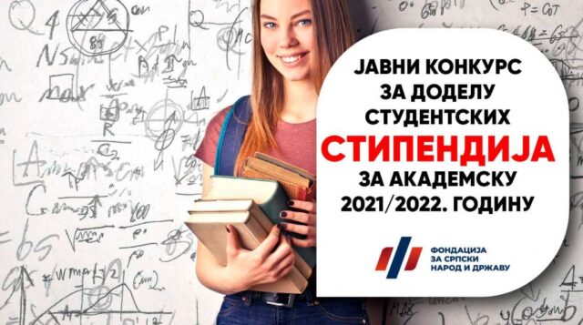FONDACIJA „ZA SRPSKI NAROD I DRŽAVU“ RASPISUJE JAVNI KONKURS ZA DODELU STUDENTSKIH STIPENDIJA ZA AKADEMSKU 2021/2022. GODINU