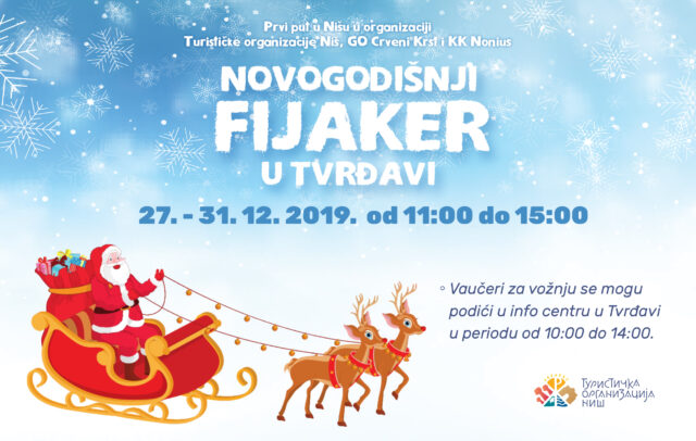 Turisti koji su za vreme novogodišnjih praznika u Nišu, kao i naši sugrađani prvi put će imati priliku da se voze fijakerom u Niškoj tvrđavi. Zabavna vožnja sa Deda Mrazom biće organizovana svakog dana od 27.12 do 31.12.2019. od 11.00 do 15.00 časova. Polazna tačka za vožnju fijakerom je ispred Letnje pozornice, a vaučeri za vožnju se mogu podići u Turističkom infocentru u Tvrđavi od 10.00 do 14.00 časova.