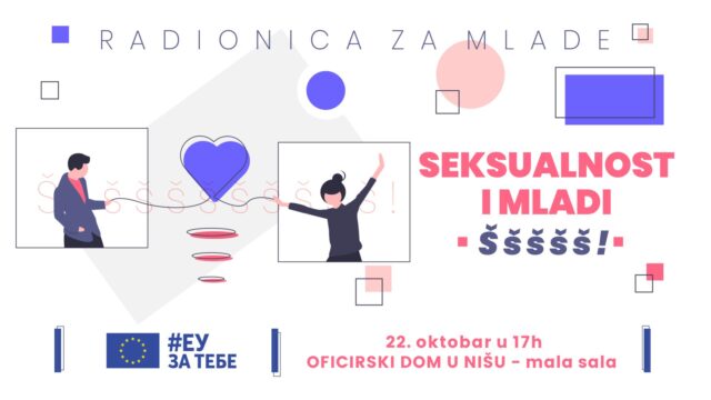 EU info kutak Niš ove nedelje organizuje novu radionicu, koja je namenjena mladima od 15 do 20 godina. Radionica pod nazivom „Seksualnost i mladi – Ššššš“ biće održana u četvrtak 22. oktobra od 17 sati u Oficirskom domu u Nišu.