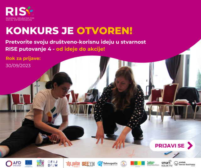 RISE – Regionalni inkubator za socijalne preduzetnike je besplatni program podrške za razvoj ideja, odnosno inovativnih rešenja za probleme u zajednici. Pored Srbije, konkurs je otvoren u još pet zemalja Zapadnog Balkana, a iz svake zemlje biće primljeno po šest timova koji će tokom programa razvijati preduzetničke veštine, nakon čega će dva tima iz svake zemlje dobiti finansijsku podršku za osnivanje svog socijalnog preduzeća. Program je namenjen motivisanim i posvećenim mladim ljudima koji su spremni da izdvoje vreme za učenje i doprinesu pozitivnim promenama na Zapadnom Balkanu.