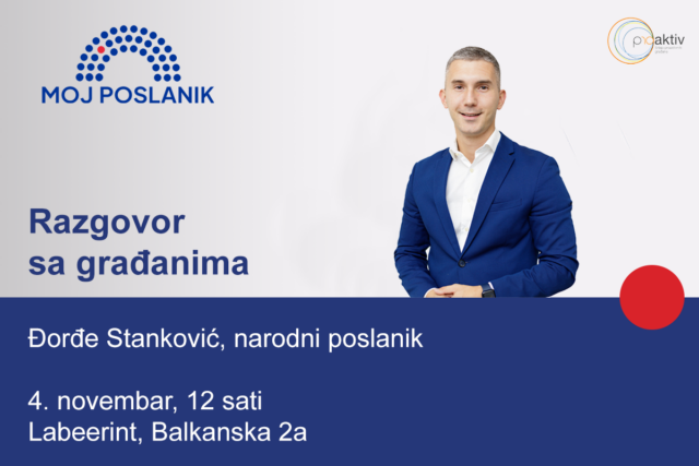 Prisustvo razgovoru sa narodnim poslanikom je slobodno za sve zainteresovane građane. Iz organizacionih razloga, neophodna je prijava. Svoje ime i prezime, sa naznakom da želite da prisustvujete događaju, možete poslati na office@proaktiv.org.rs.