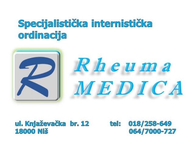 Specijalistička internistička ordinacija ʺRheumamedicaʺ Knjaževačka br. 12, Niš , telefoni 018/ 258-649 064/ 7000-727