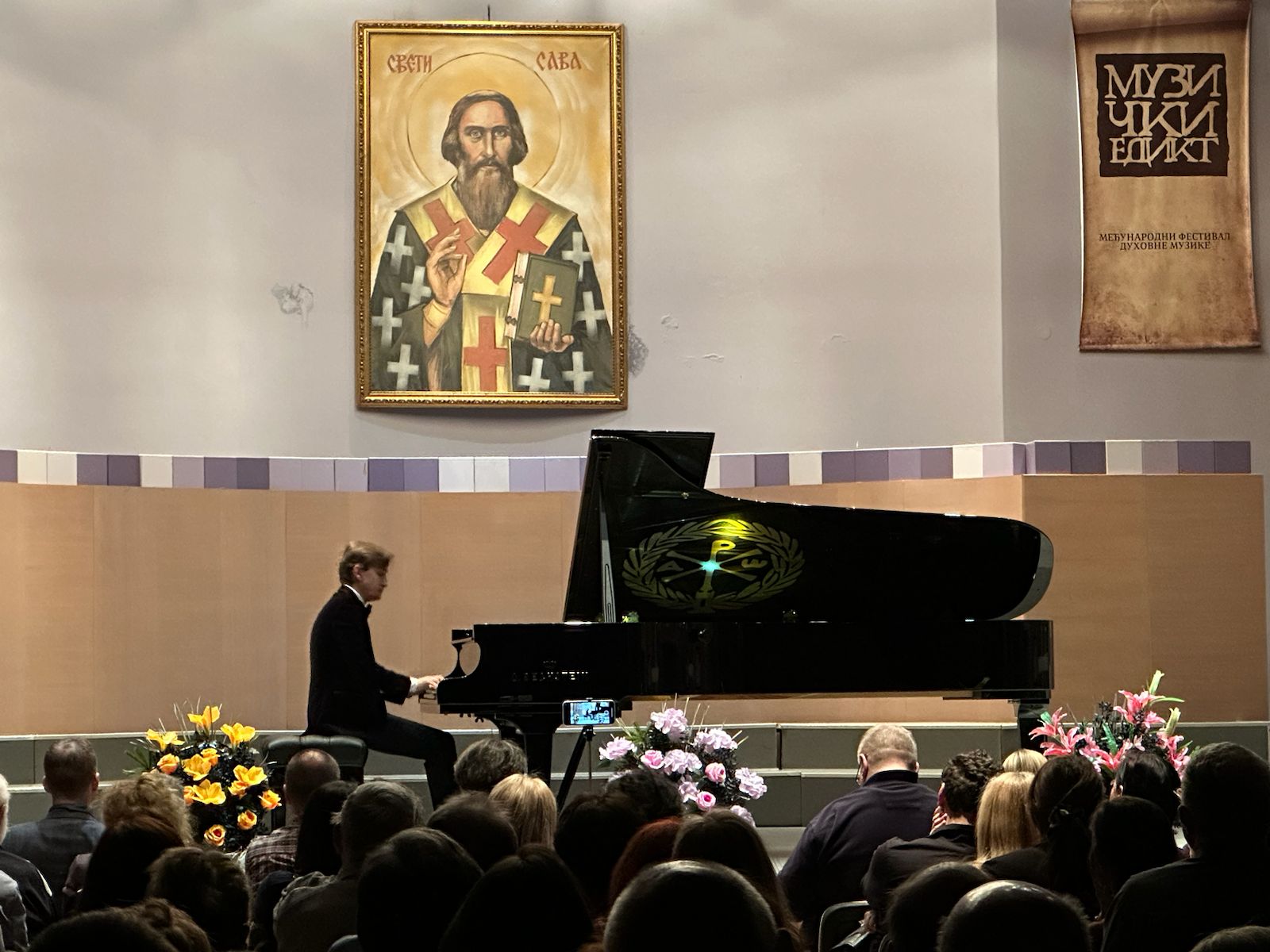 Posebnu dimenziju koncertu dao je i instrument na kojem je pijanista nastupio – koncertni klavir marke „behštajn” (Bechstein) u Velikoj sali Svetosavskog doma, na kome se nalazi monogram Isusa Hrista, simbol koji se tradicionalno povezuje sa carem Konstantinom Velikim i njegovom čuvenom porukom „Ovim znakom pobeđuješ”.