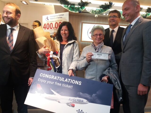 Poklone su 400.000 putniku uručili predstavnici grada i aerodroma kao i kompanije Air Serbia-e.