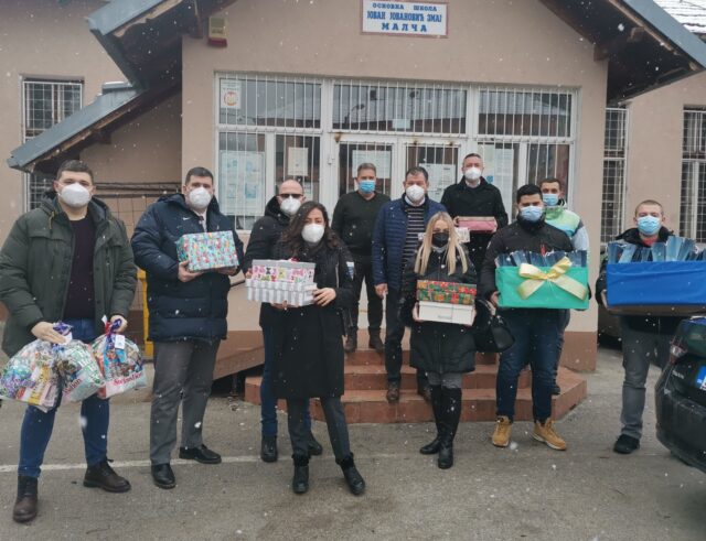 Kao i svim školama na području Opštine, ovom prilikom, uručeni su beskontaktni kovid dozatori za bezbedniji rad školskih kolektiva a učenicima su podeljeni poklon paketići kao zajedniča donacija Grada i Opštine, koji su pod sloganom „Udruženi možemo sve“, obezbeđeni u saradnji sa Kompanijom „Olimpijas kniting“, PD „Živanović“ iz Donjeg Matejevca i dobročiniteljsim gestom muzičara Nebojše Saitovića.