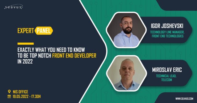 Seavus-ovi Front-end stručnjaci će na panelu diskutovati o trendovima, najboljim praksama i idejama, a preko tehničkog i praktičnog znanja i primera, učesnici će moći da nauče o novim Front-end tehnologijama i da unaprede svoje veštine.