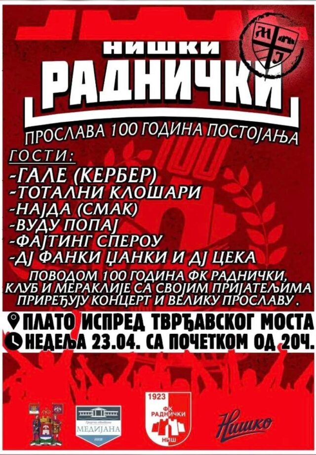 Naša grupa je pored vatrometa kakav Niš nije video, spremila još par iznenađenja za širu javnost na koncertu, koje nećemo otkrivati do tada, već pozivamo sve Meraklije, Nišlije, lokal patriote da zajedno dočekamo i proslavimo čitav vek gradskog kluba te noći!