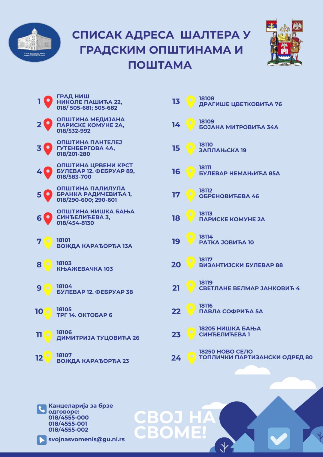 Naslovna Društvo Spisak lokacija u Nišu za upis prava svojine od 8. decembra DruštvoNiš Spisak lokacija u Nišu za upis prava svojine od 8. decembra Od redakcija GP018 - 05/12/2025 0 FacebookTwitterPinterestWhatsApp Od ponedeljka 8. decembra građani Srbije mogu da započnu postupak upisa prava svojine na objektima.