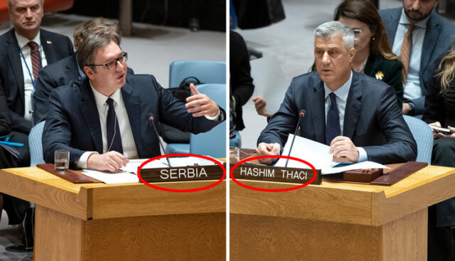 A tamo, na toj sednici, kako je primetio ruski ambasador u beogradu Aleksandar Čepurin, Aleksandar Vučić je nastupio pored tablice “Srbija”, jednao kao i predstavnici članica SB UN (Rusija, Kina, SAD i dr.). A Hašim Tači — pored tablice “Hašim Tači”. Dakle, nema države ispred gospodina, koga su oslovljavali sa “gospodine”, dok su Vučića oslovljavali sa “predsedniče”. Predsednik došao na Savet bezbednosti u ime svoje države Srbije, gospodin u svoje ime, a može i prezime….sasvim je svejedno.