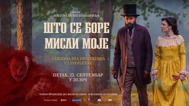Specijalna projekcija najnovije istorijske domaće drame ,,Što se bore misli moje” biće održana u petak, 22. septembra od 20.30 časova u Cineplexx Niš bioskopu. Gostima bioskopa predstaviće se deo autorske i glumačke ekipe filma nakon projekcije. Ulaznice su u prodaji na blagajni bioskopa i putem aplikacije CineplexxRS.