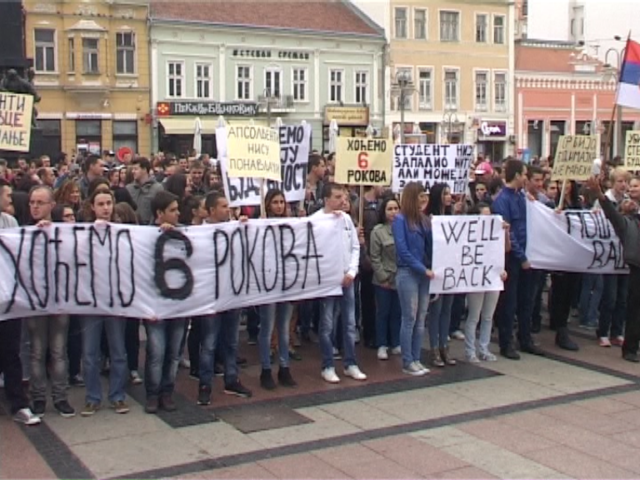 Nezadovoljni ukidanjem apsolvetnskog staža i smanjenjem rokova studenti ponovo izlaze na ulicu. Protestuju zbog izmena Zakona o visokom obrazovanju. Tražili su pregovore sa Vladom i Ministarstvom prosvete, ali još nisu dobili odgovor.Ukoliko zahtevi ni posle protesta u Nišu, Kragujevcu, Beogradu, Novom Sadu, Kosovskoj Mitrovici i Novom Pazaru ne budu ispunjeni, Studentska konferenecija univerziteta Srbije 13. oktobra najavljuje protest ispred Vlade Srbije.