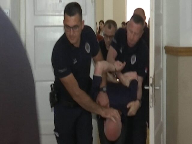 Ustao je sa klupe i udario glavom o sto, a onda se otimao trojici stražara koji su priskočili kako bi ga smirili i izveli iz sudnice.
