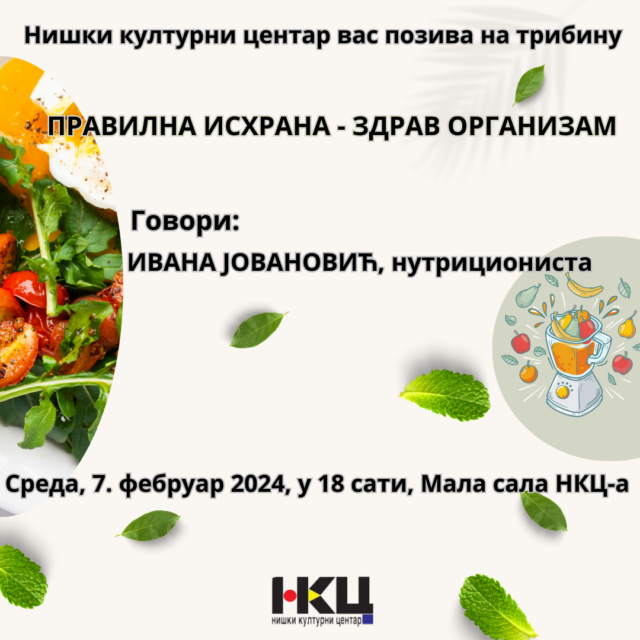 U sredu 7. februara u maloj sali NKC-a održava se tribina Ishrana – zdrav organizam sa početkom od 18 sati.