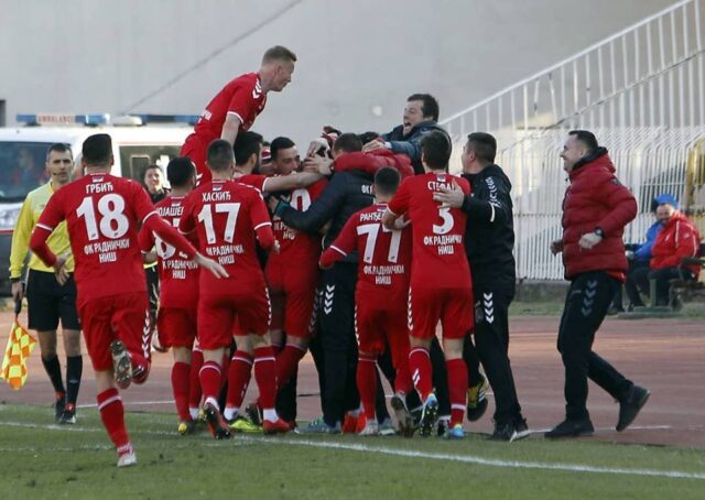 Naslovna Niš TRIJUMF MERAKLIJA NišSport TRIJUMF MERAKLIJA Od redakcija GP018 - 16/02/2019 0 FacebookTwitterPinterestWhatsApp Gradski Portal 018 – 16.02.2019 Niški Radnički je u prvoj utakmici prolećnog dela Super lige Srbije pobedio je Čukarički na domaćem terenu rezultatom 2:0. Golove za domačine postigli su Drinčić u 29. i Haskić u 42. minutu utakmice.