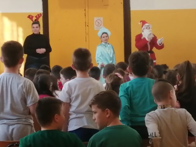 Učenici četvrtog razreda ovih osnovnih škola imali su priliku da se upoznaju sa pomoćnicom ruskog Deda Mraza, njegovom unukom Snjeguročkom, poznatom junakinjom ruskih narodnih bajki,  baba Jagom, kao i da se druže sa već poznatim likovima popularnog crtanog filma “Maša i medved”.