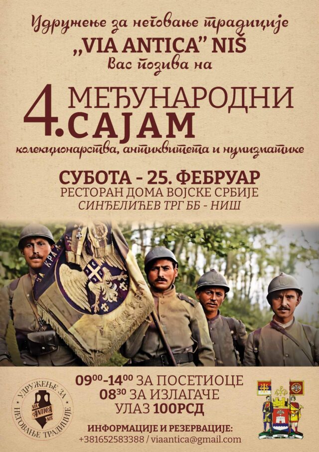 Četvrti po redu Međunarodni sajam kolekcionarstva, antikviteta i numizmatičara biće održan u subotu 25. februara u restoranu Doma Vojske Srbije na Sinđelićevom trgu.
