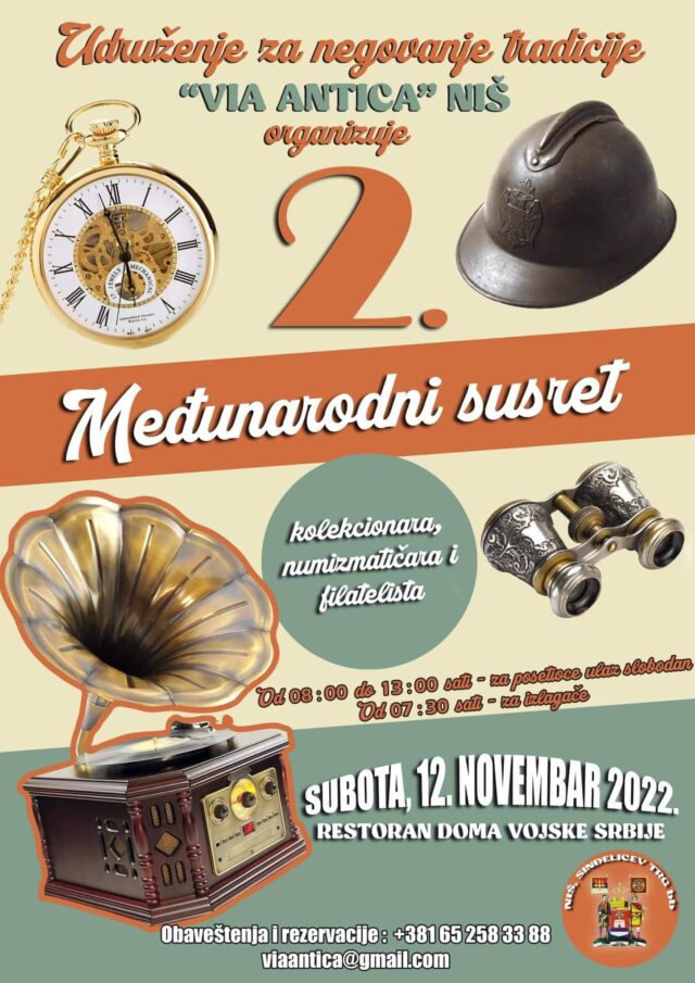 Drugi po redu Međunarodni susret kolekcionara, numizmatičara i filatelista biće održan u subotu 12. novembra u restoranu Doma Vojske Srbije u Nišu.