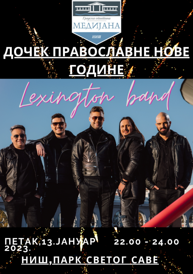 Nišlije i svi posetioci Grada Niša, moći će da uživaju u muzici i nastupu Lextington bend-a. Bend je osnovan 2004. godine i jedan je od najpopularnijih pop bendova u Srbiji i regionu. Program počinje u 22 sata i trajaće do ponoći, za kada je predviđen vatromet.