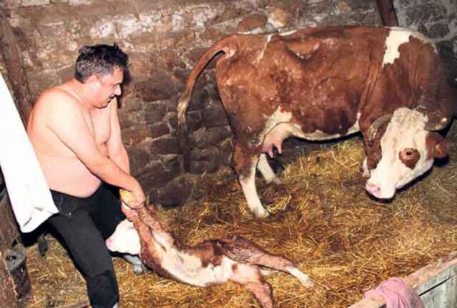Pošto veterinar nije mogao da se probije zbog nevremena, Milija Miletić pritekao u pomoć pri teškom teljenju