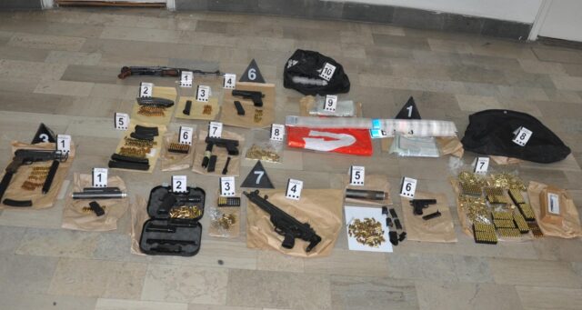 Policija je u garaži osumnjičenog pronašla dva pištolja „češka zbrojovka“, pištolje „glok“ i „bereta“, automatsku pušku, hekler, poluautomatski pištolj „škorpion“, municiju raznih kalibara, 14 okvira, pet prigušivača, rezervnu cev za „glok“, plastične delove za pištolj i drogu MDMA.