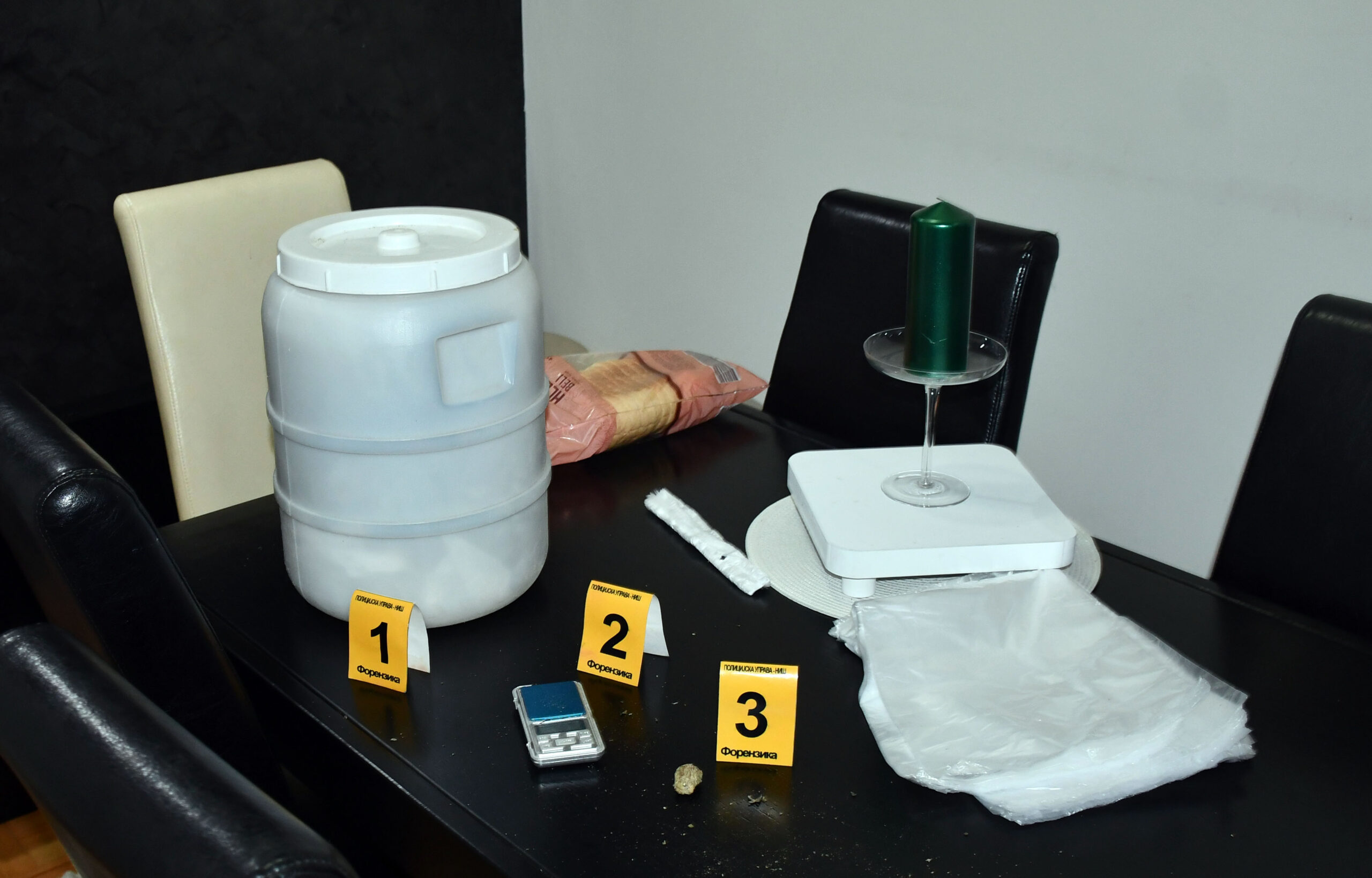 Prilikom pretresa stana i drugih prostorija koje koristi A. P, policija je pronašla sedam paketa sa oko 1,8 kilograma materije za koju se sumnja da je marihuana, kao i vagicu za precizno merenje. Takođe, policijski službenici su A. P. zatekli u trenutku kada je A. T. prodao paketić sa oko šest grama, L. A. paketić sa oko 12 grama i N. S. paketić sa oko 18 grama materije za koju se sumnja da je marihuana.