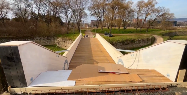 Grafiti koji su ispisani na novom pešaškom mostu u Tvrđavi su uklonjeni, a radovi na njegovom postavljanju privode se kraju i uskoro će biti predat građanima na korišćenje, potvrdila je gradonačelnica Dragana Sotirovski.