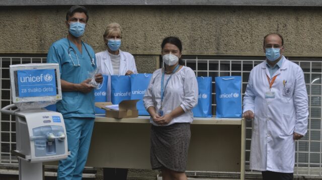 U skladu sa najnovijim razvojem epidemiološke situacije i potrebama zdravstvenih ustanova, UNICEF je danas isporučio 20 protokomera i četiri neonatološka respiratora Kliničkim centrima u Nišu i Kragujevcu. Tokom naredne nedelje, UNICEF će donirati i dodatne respiratore za neonatologiju: tri Institutu za neonatologiju i po jedan Institutu za majku i dete, Univerzitetskoj dečijoj klinici Tiršova i Institutu za zdravstvenu zaštitu dece i omladine Vojvodine. Pored toga, biće isporučeno i dodatnih 30 protokomera zdravstvenim ustanovama u Beogradu.