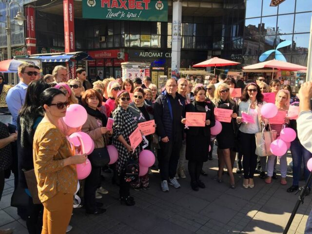 Unija žena Gradskog odbora Srpske napredne stranke Niš na čelu sa poverenicom Unije Svetlanom Milijić organizovala je akciju kako bi obeležila mesec oktobar koji je u svetu poznat kao mesec obeležavanja borbe protiv raka dojke sa ciljem podizanja svesti građana Niša. Akciji je prisustvovao i poverenik Gradskog odbora Srpske napredne stranke Niš Zvezdan Milovanović i počela je tačno u podne na platou ispred TC „Kalča“