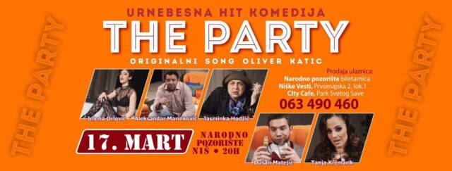 Urnebesna komedija pod nazivom „The Party“ naćiće se 17. marta na repertoaru niškog Narodnog pozorišta. Početak je zakazan za 20 časova a organizatori najavljuju vrhunsku predstavu i smeh do suza.