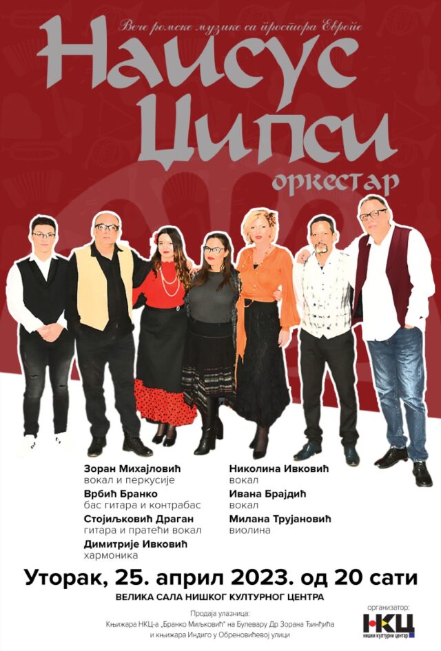 Naisus Džipsi orkestar nastupiće 25. aprila 2023. godine u Velikoj sali NКC-a od 20 sati.