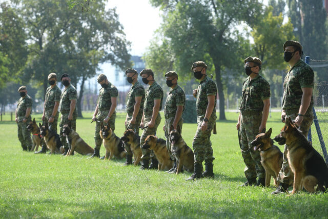 Prema rečima komandanta Centra za obuku pasa majora Zdenka Cvijetića, danas je prikazana osposobljenost vodiča pasa i pasa, odnosno pripadnika koji su na usavršavanju.