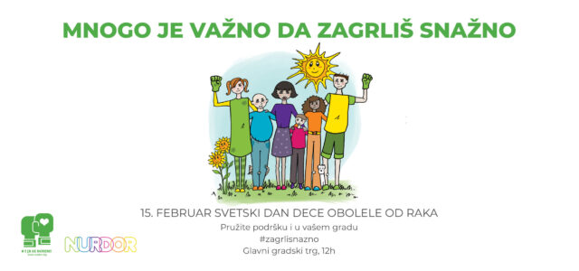 Svakog 15. februara, svet obeležava Dan dece obolele od raka, a Nacionalno udruženje roditelja dece obolele od raka – NURDOR, tradicionalno će organizovati skupove na trgovima, glavnim ulicama i šetalištima više od 30 gradova širom Srbije od 12 do 14 sati.
